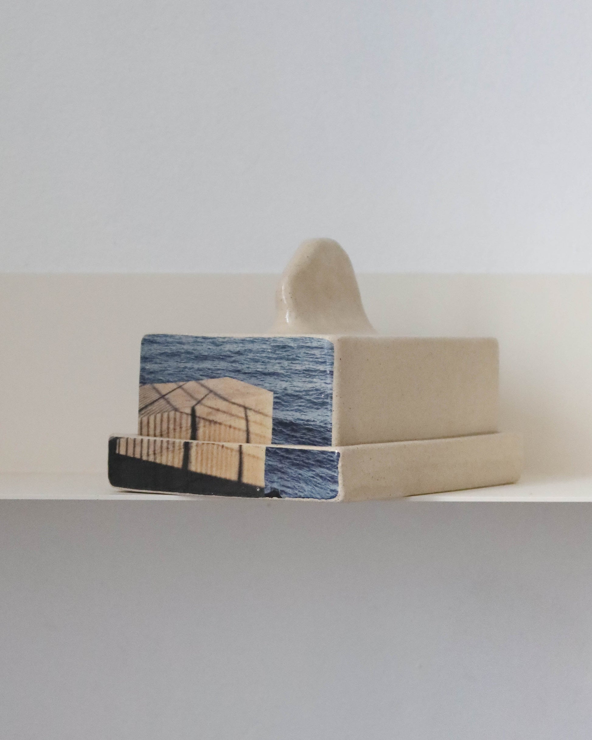 The classic Nabi butter dish, decorated with one of my photos of Marseille. Made from beige grogged stoneware. A signature piece, filled with memories.