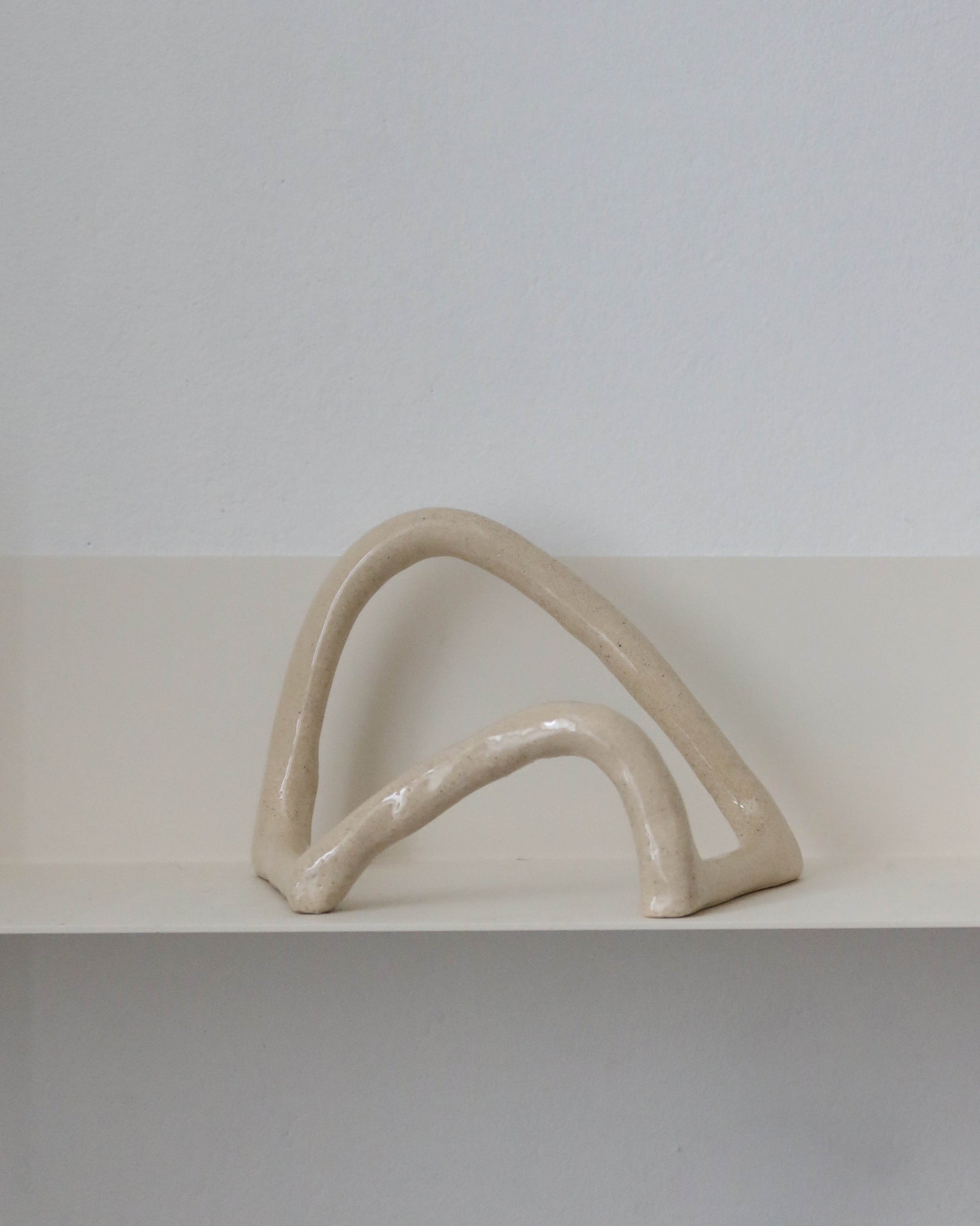 A beige grogged stoneware book stand with a shiny glaze. Perfect for displaying your favorite books and showcasing their beautiful covers . Handmade