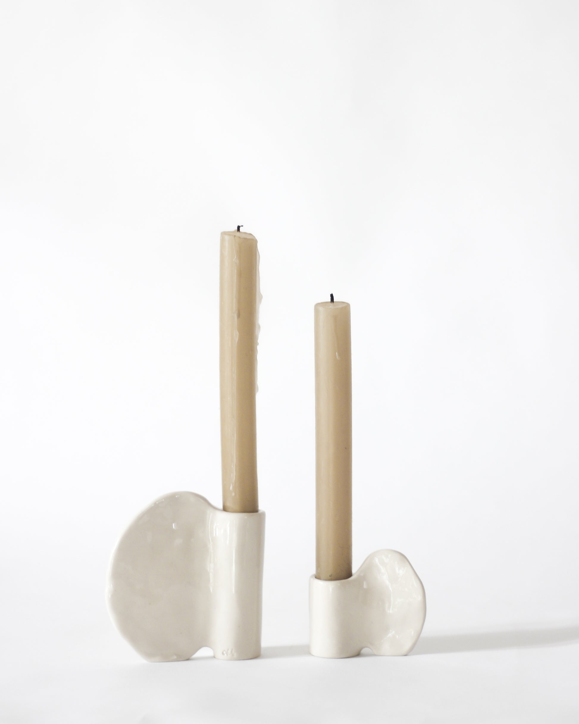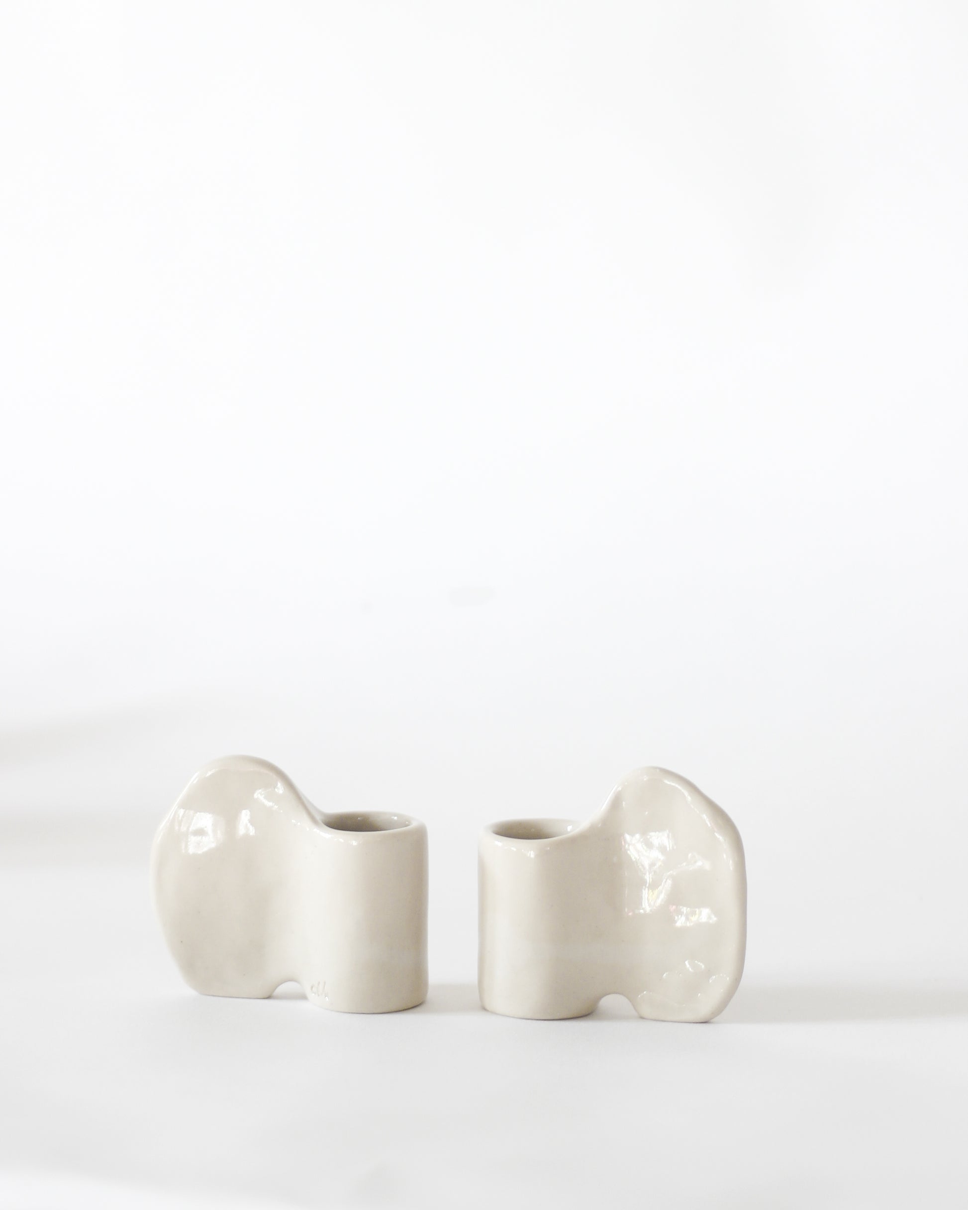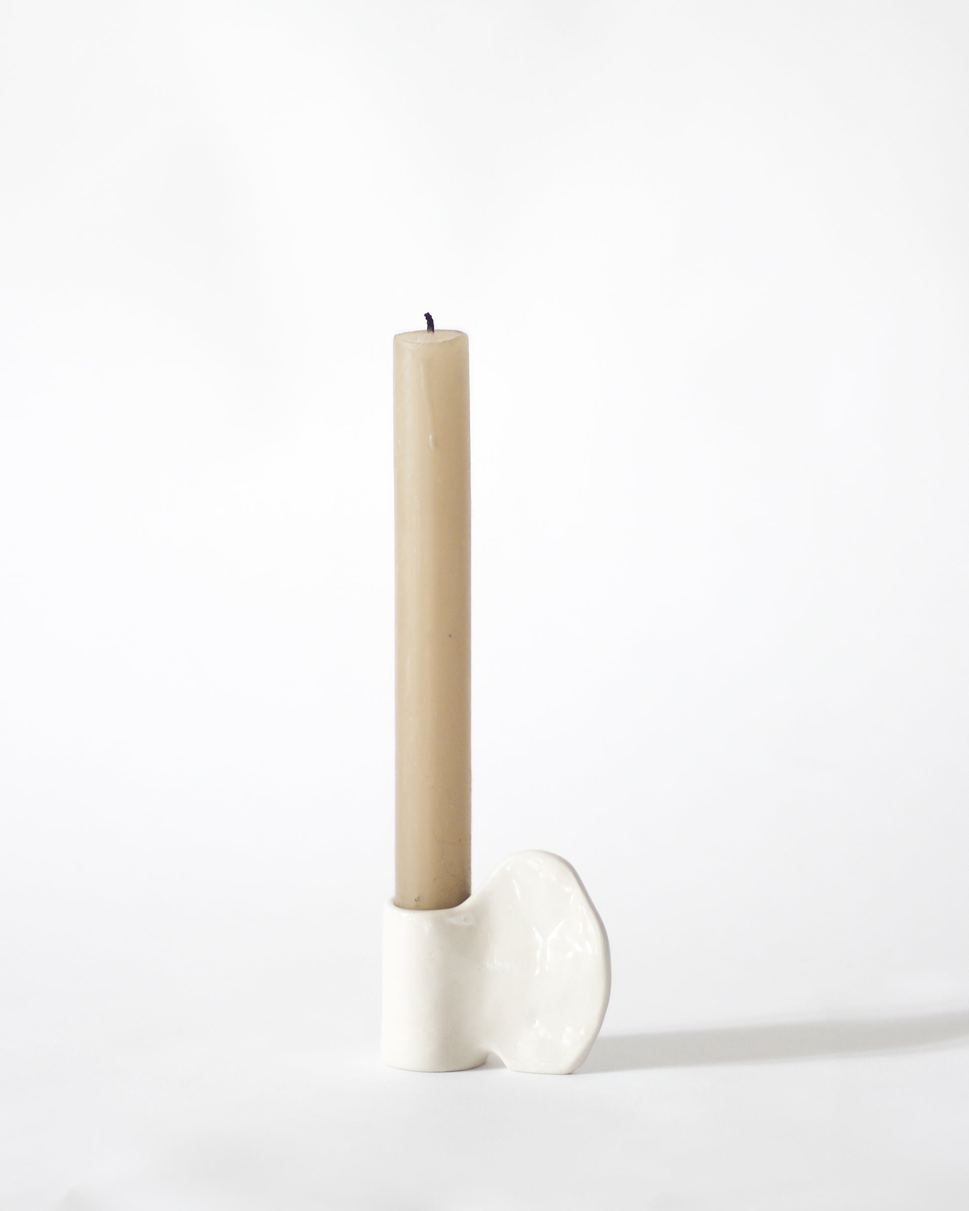 Petit bougeoir en grès blanc.