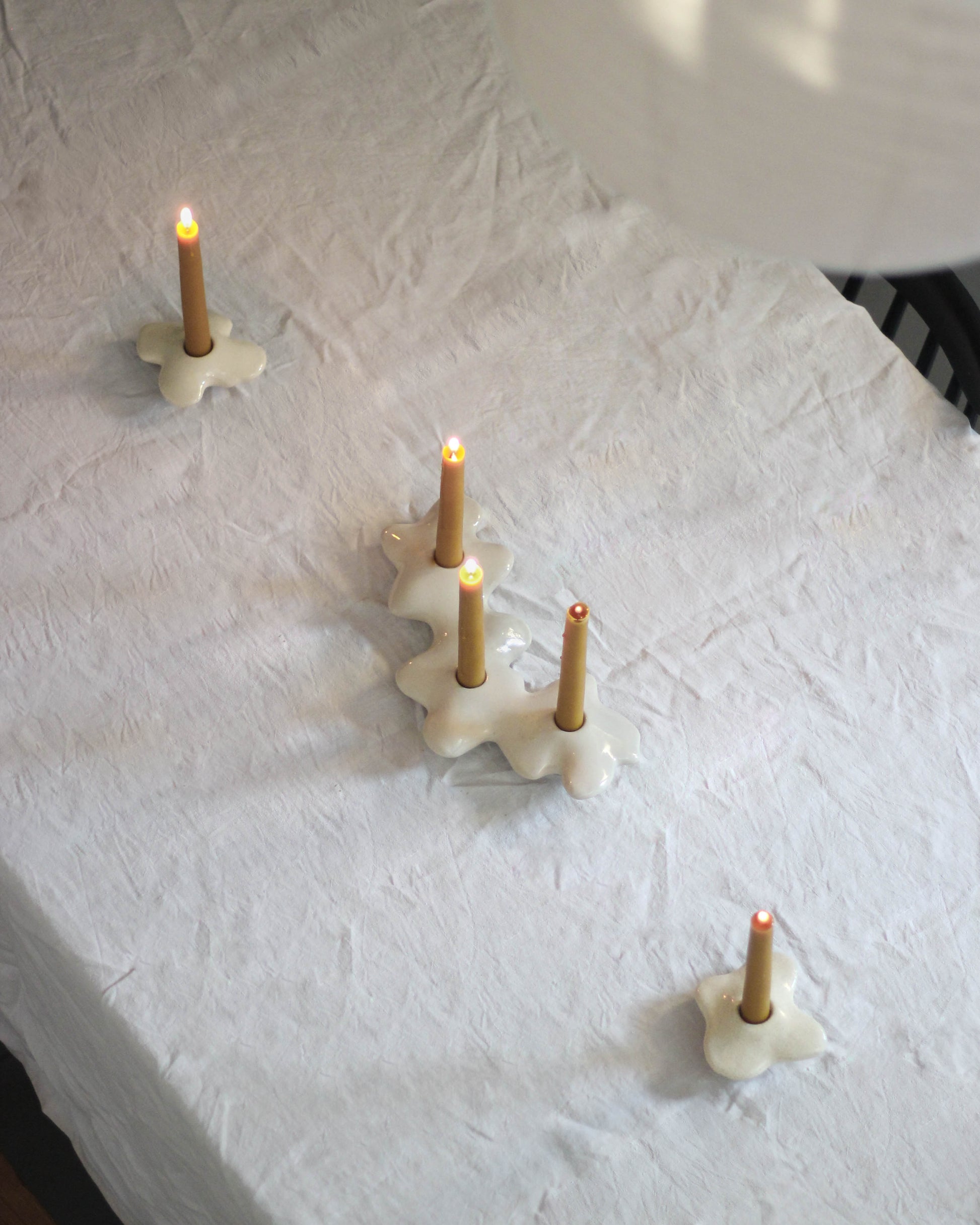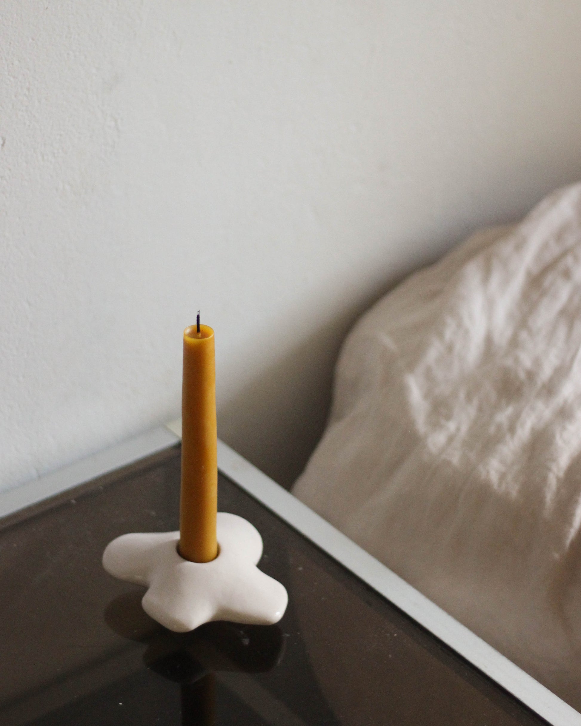 Ce bougeoir en grès, aux courbes douces, avec un design épuré et enfantin Je l'ai créé, inspiré par les fleurs de pensées que ma mamie pressait dans ses livres, pour ajouter une pièce douce et chaleureuse à votre intérieur.
