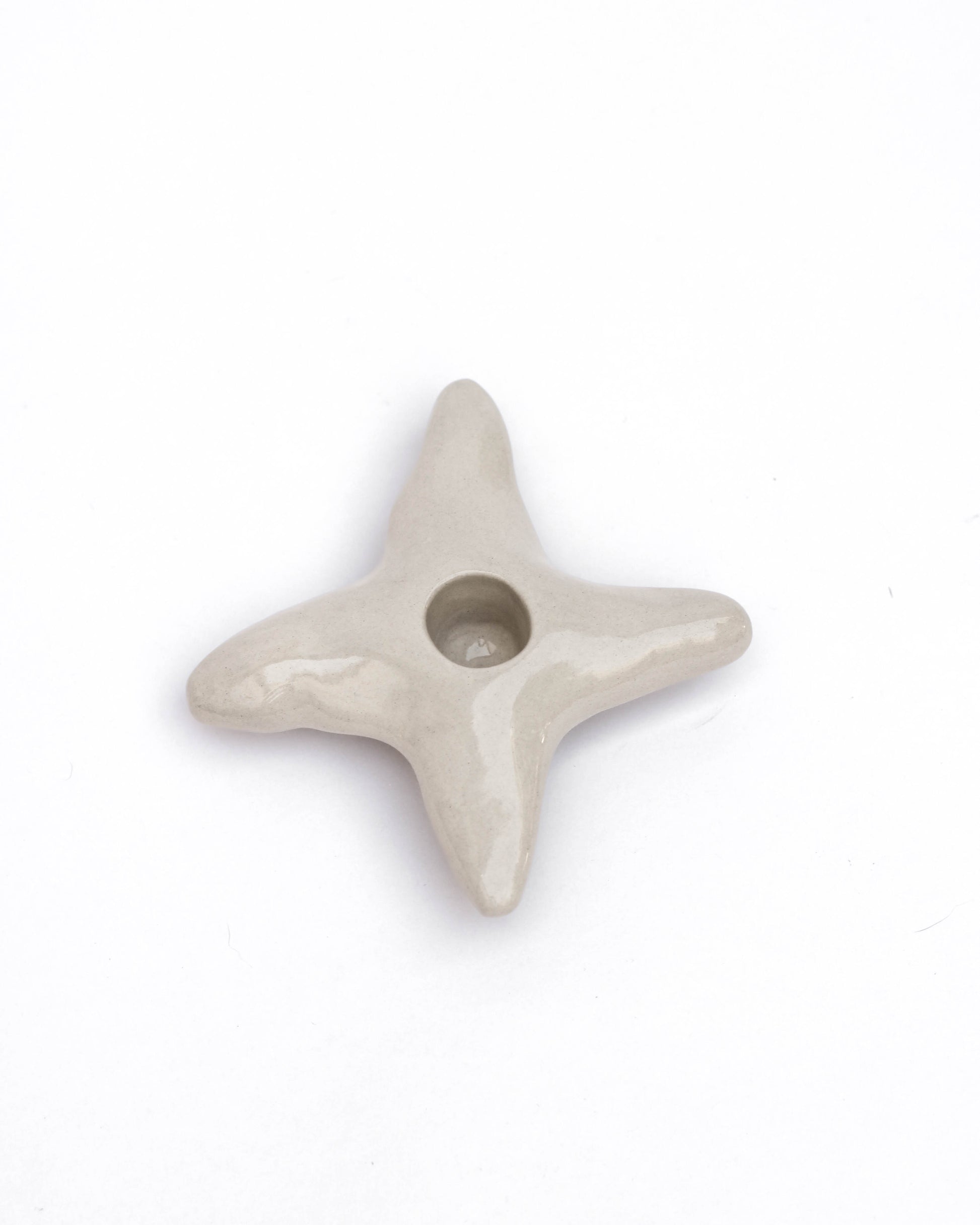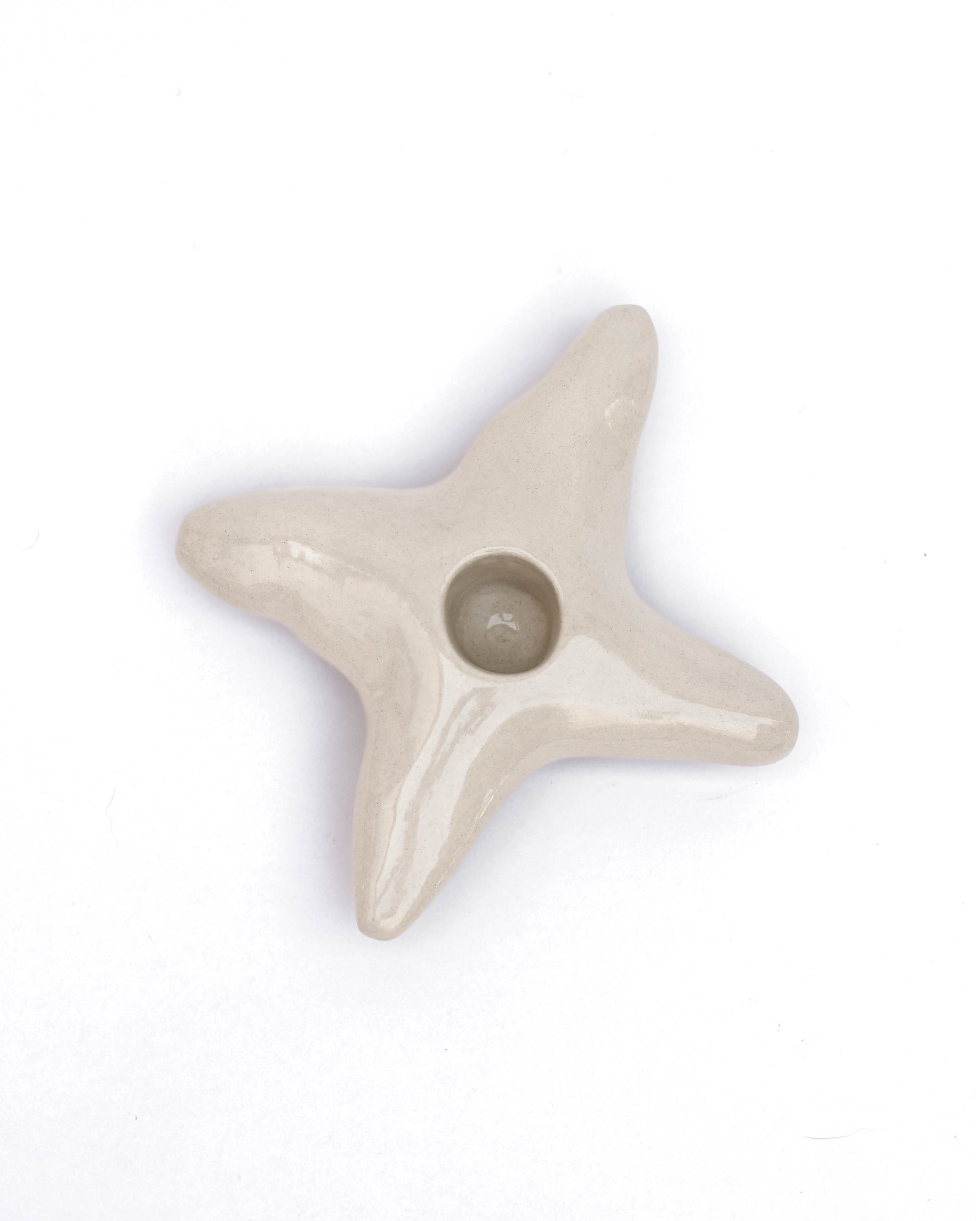 Bougeoir en grès beige, étoile à 4 branches, idéal pour ajouter une touche de design élégant et chaleureux à votre intérieur.