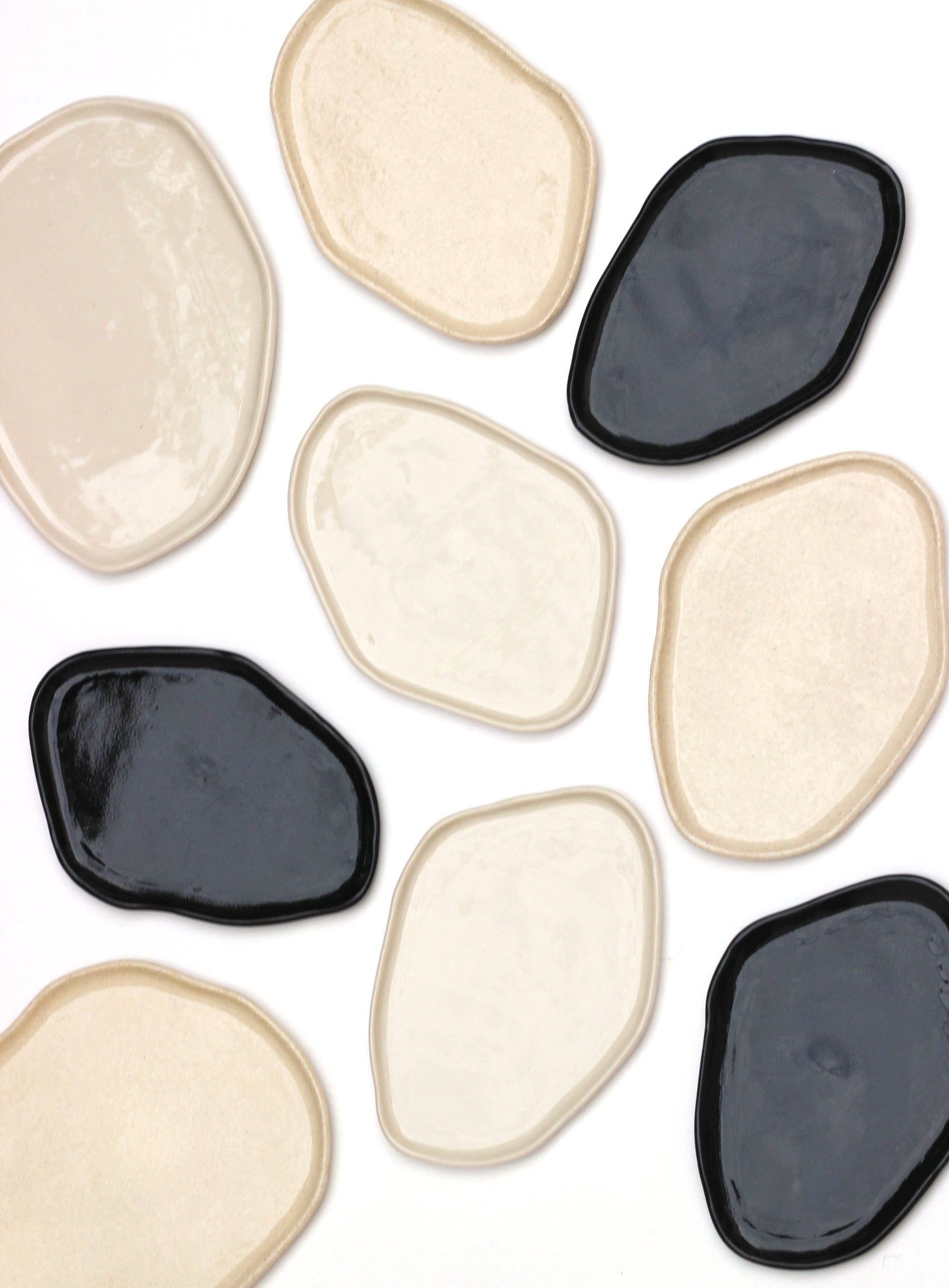 Petit plateaux en grès, aux bords irréguliers. Disponible en plusieurs couleurs.