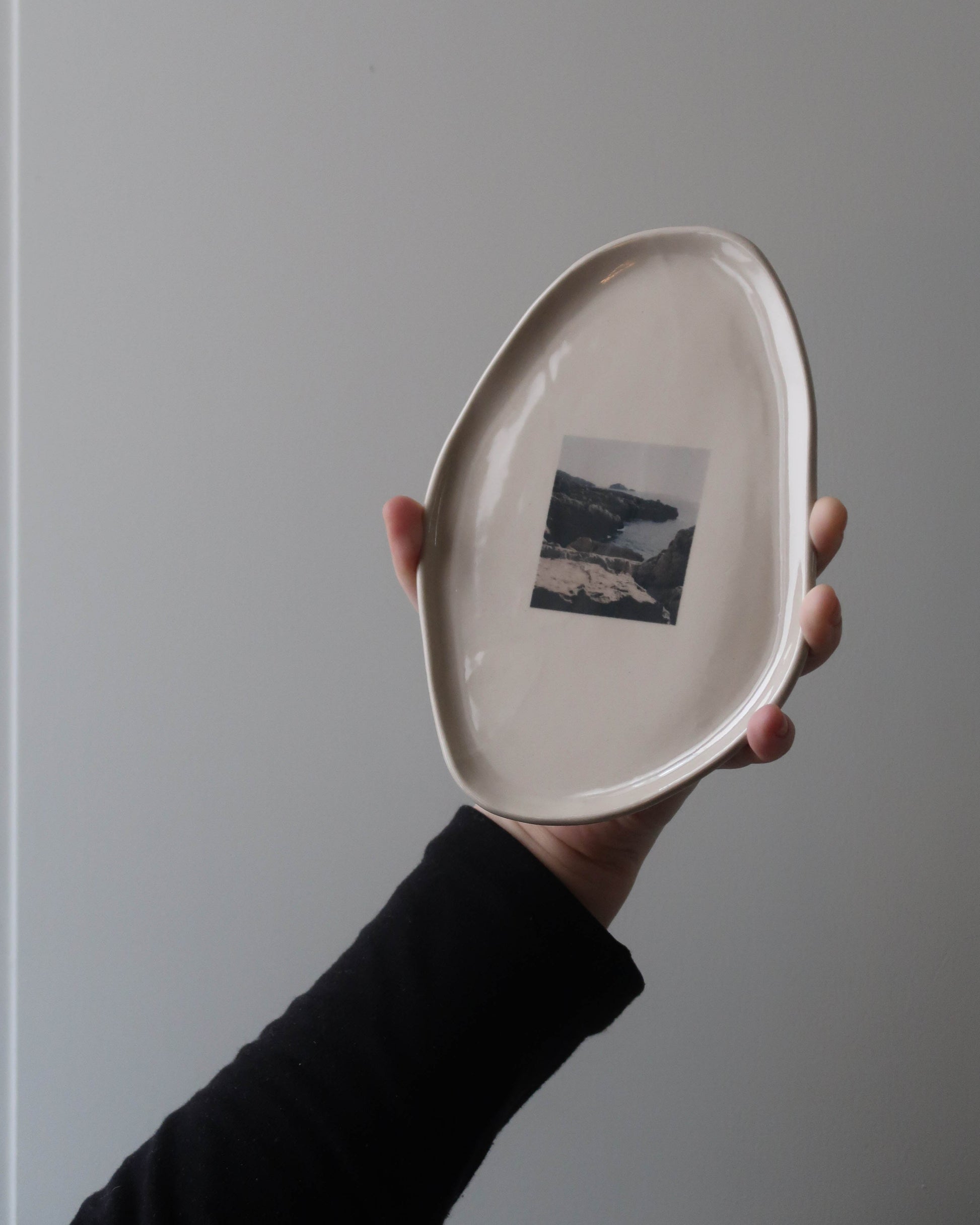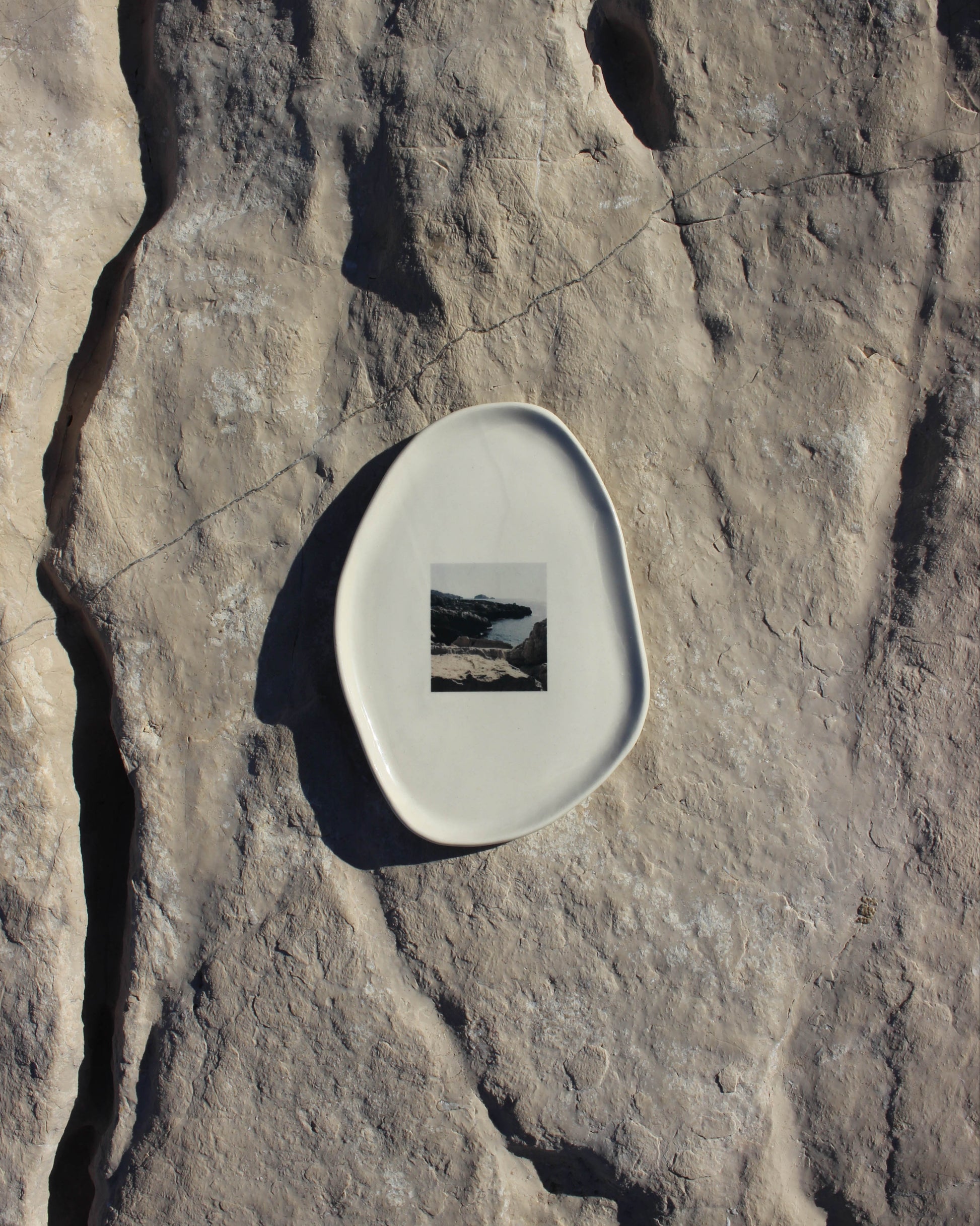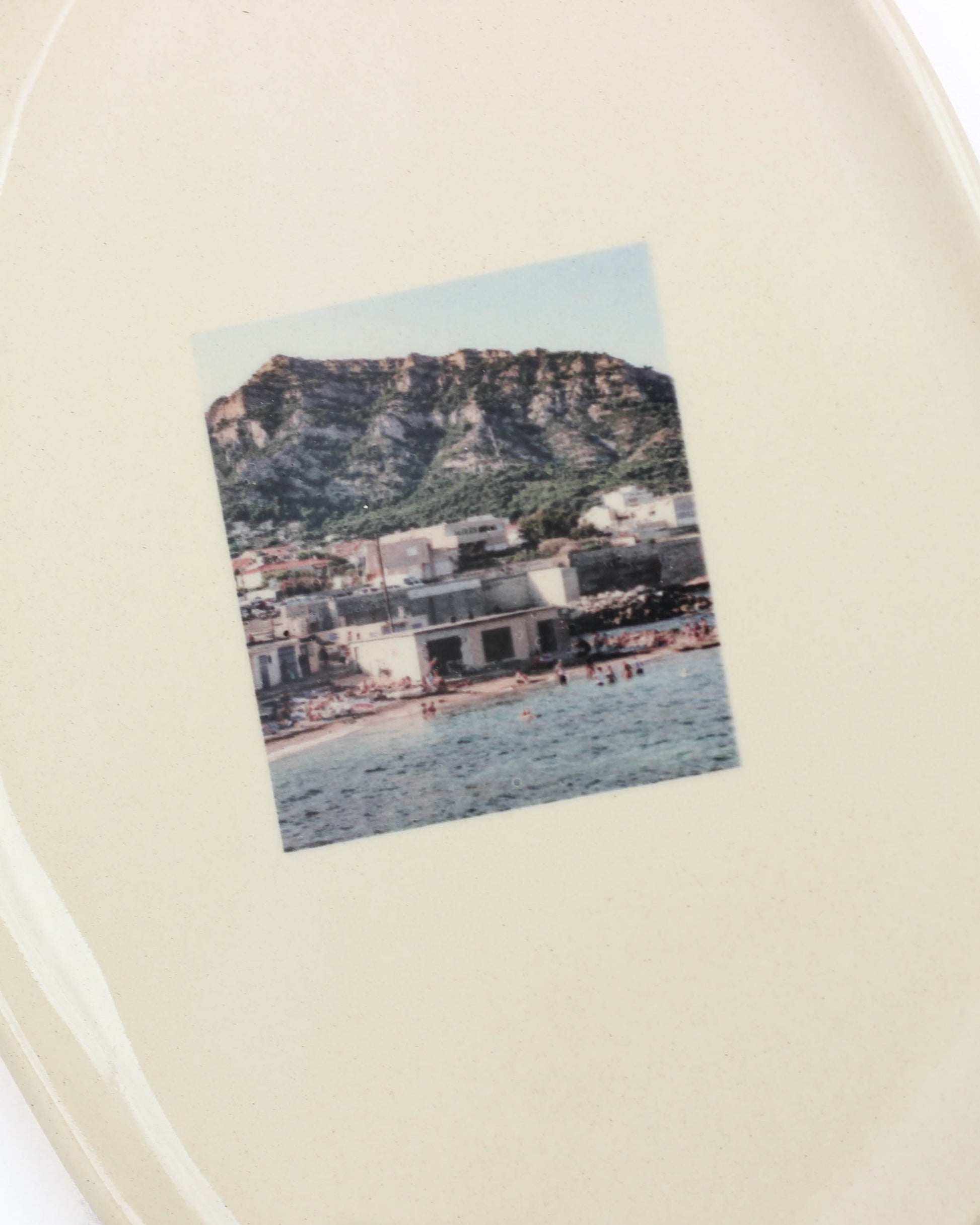 Ce plateau associe mes photos de Marseille, de la calanque de Saména aux Goudes. Un moment, un souvenir, un lieu que j’ai voulu fixer et intégrer dans un objet. Chaque plateau devient ainsi une façon d’emporter un morceau de Méditerranée chez soi.